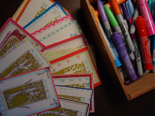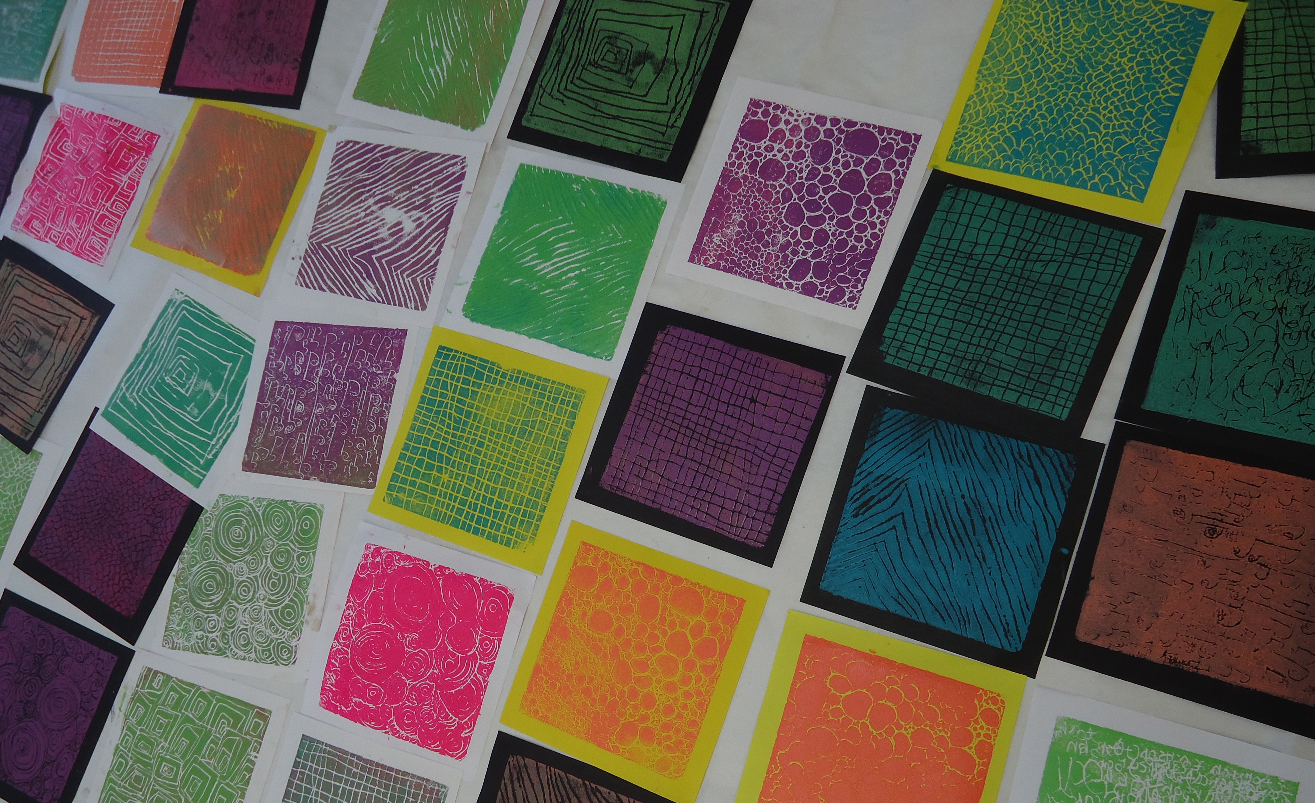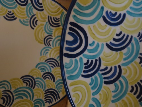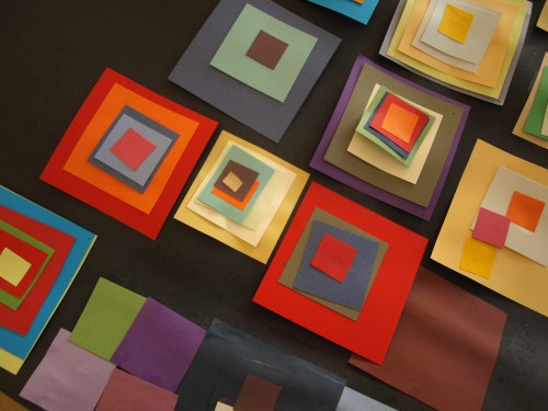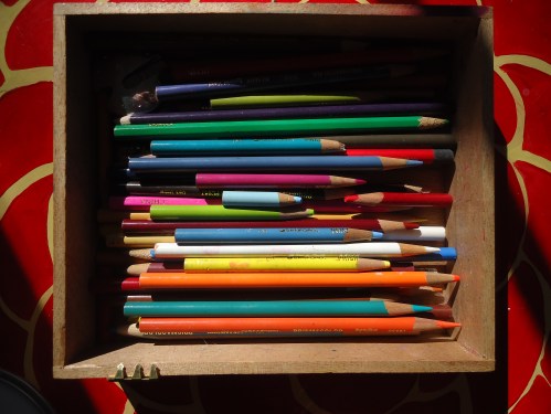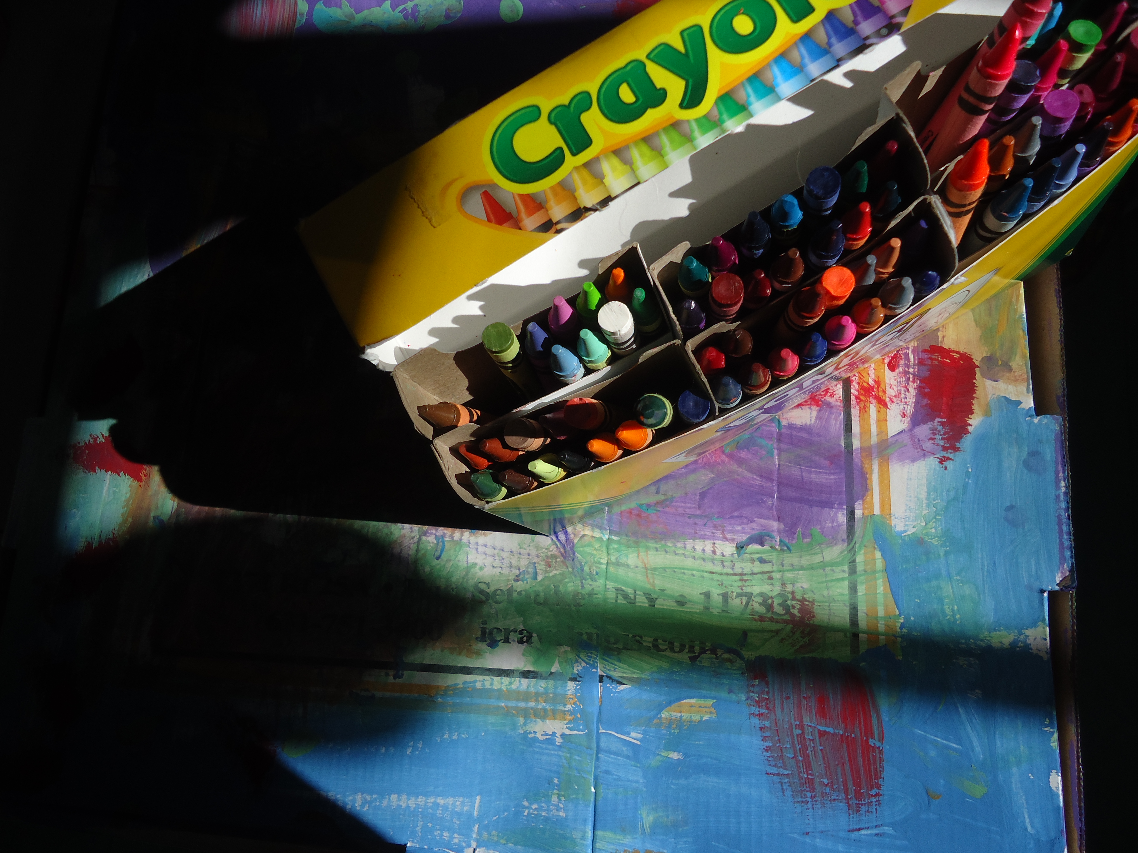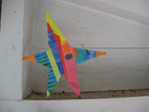 description of images from top to bottom: 1. box o’ colored pencils 2. hand painted table 3. collaged star made from hand painted tissue papers 4. patrick’s birthday card 5. watercolor fun with shannon timoney photography 6. collaged squares from blueschool.org 7. hand painted plates for john and eleana 8. new years postcards 9. refurbished oil pastel bits 9. the joy of painting 10. texture relief prints 11. crayon love 12. more new years postcards 13. oil painting feels like spreading pigmented butter. yum.