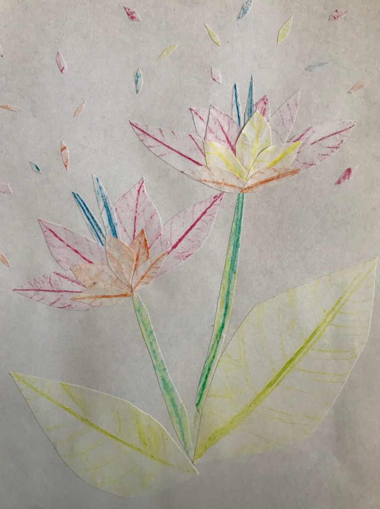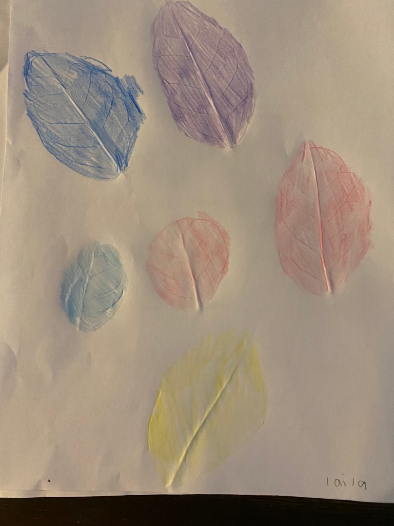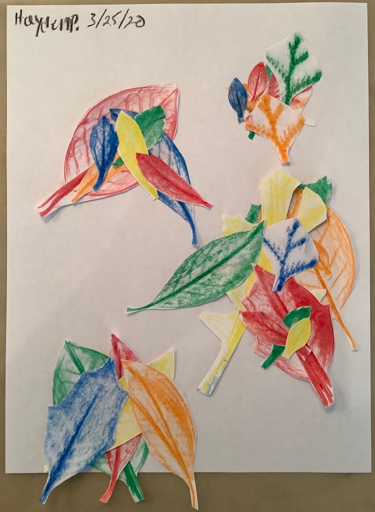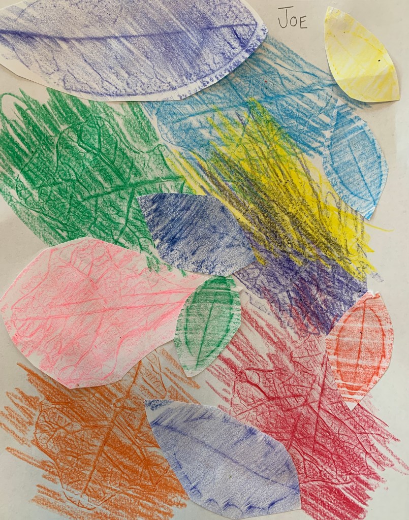 I appreciate nature and all of its beauty, do you? Nature often inspires me to make art. FA Artists in Early Childhood through grade 3 recently went on a treasure hunt through their backyard to find nature that they used to make leaf rubbings. Some artists then used their leaf rubbings as colored patterned paper to make collages.