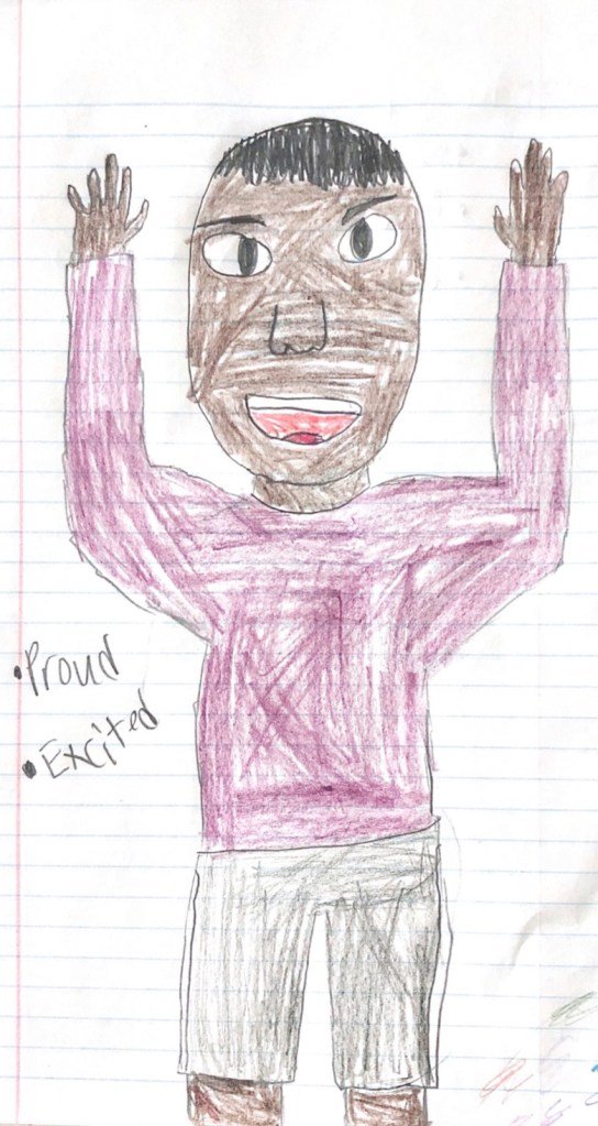 I chose these emotions because they are the way I feel about virtual school. I feel peaceful when I am doing my work with no distractions. I get excited when I get to see my friends on google meet. And sometimes I get angry or frustrated when I don’t understand something.