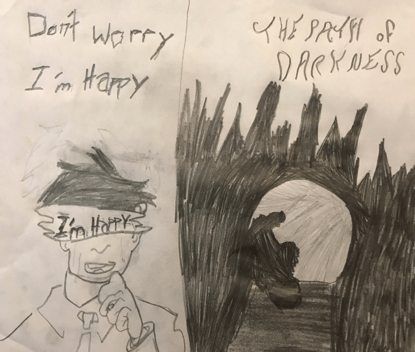 The left side is about a boy who is perfect on the inside but is breaking down on the inside and doesn’t have the courage to tell his friends.