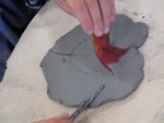 What other material would be able to display the textures found in a leaf? Students pressed leaves into clay with the help of a rolling pin and carefully lifted the pointed subject. A beautiful impression was left in the clay and students were motivated to use a clay knife to follow the contours of the leaf and cut out its elaborate shape. Colored underglazes can be used after a bisque firing to make these hard-to-see details more prominent. See the link for clay relief below. At the end of the class period, students had made at least three clay reliefs and joined them together to form a fall inspired sculptural work of art.