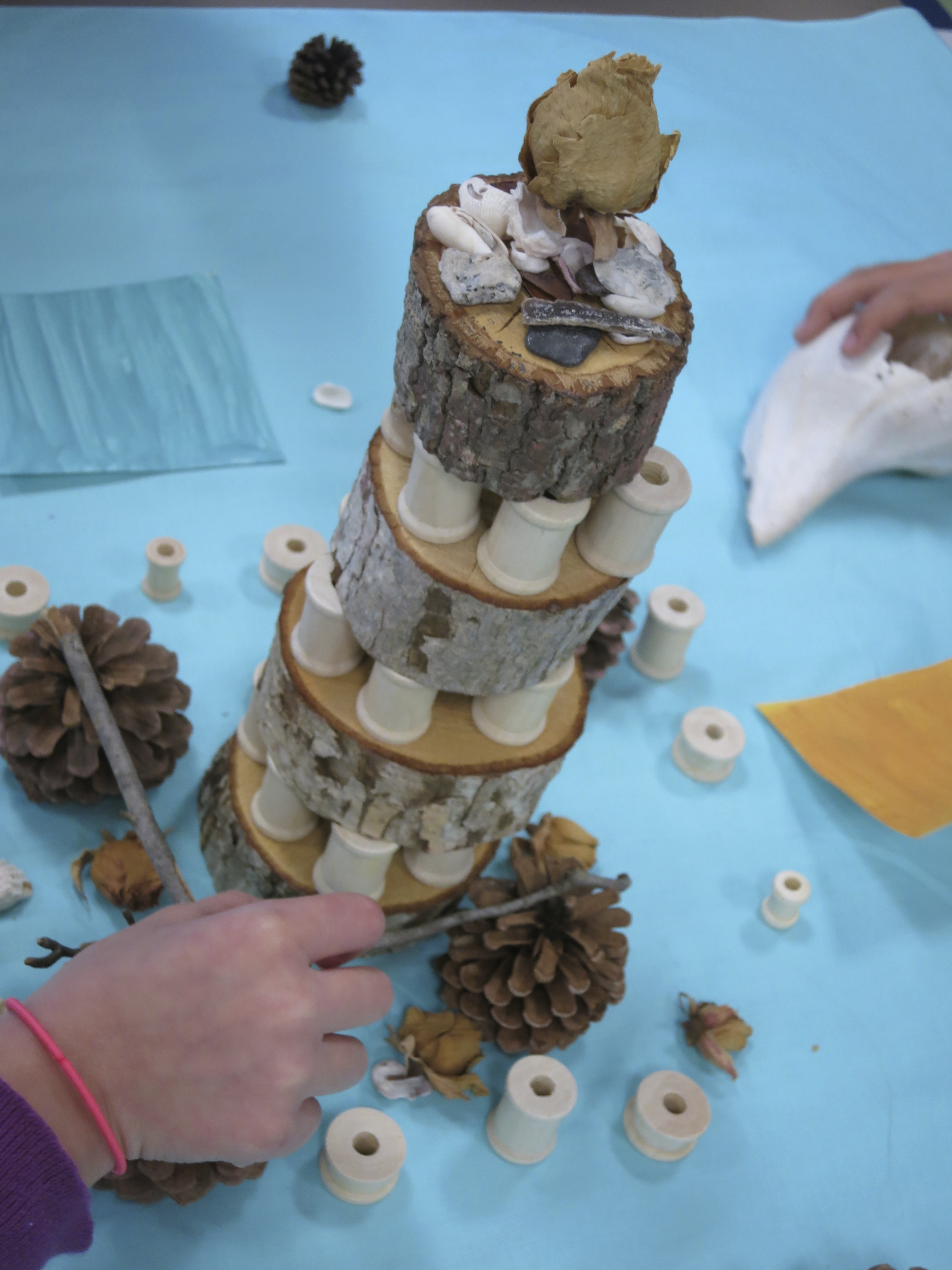 I heard students discuss which materials to use and where to place them. Objects were re-arranged to compromise the groups design choices. Young artists were motivated to make this a fun and successful activity and positive thoughts and compliments were bursting like fireworks.