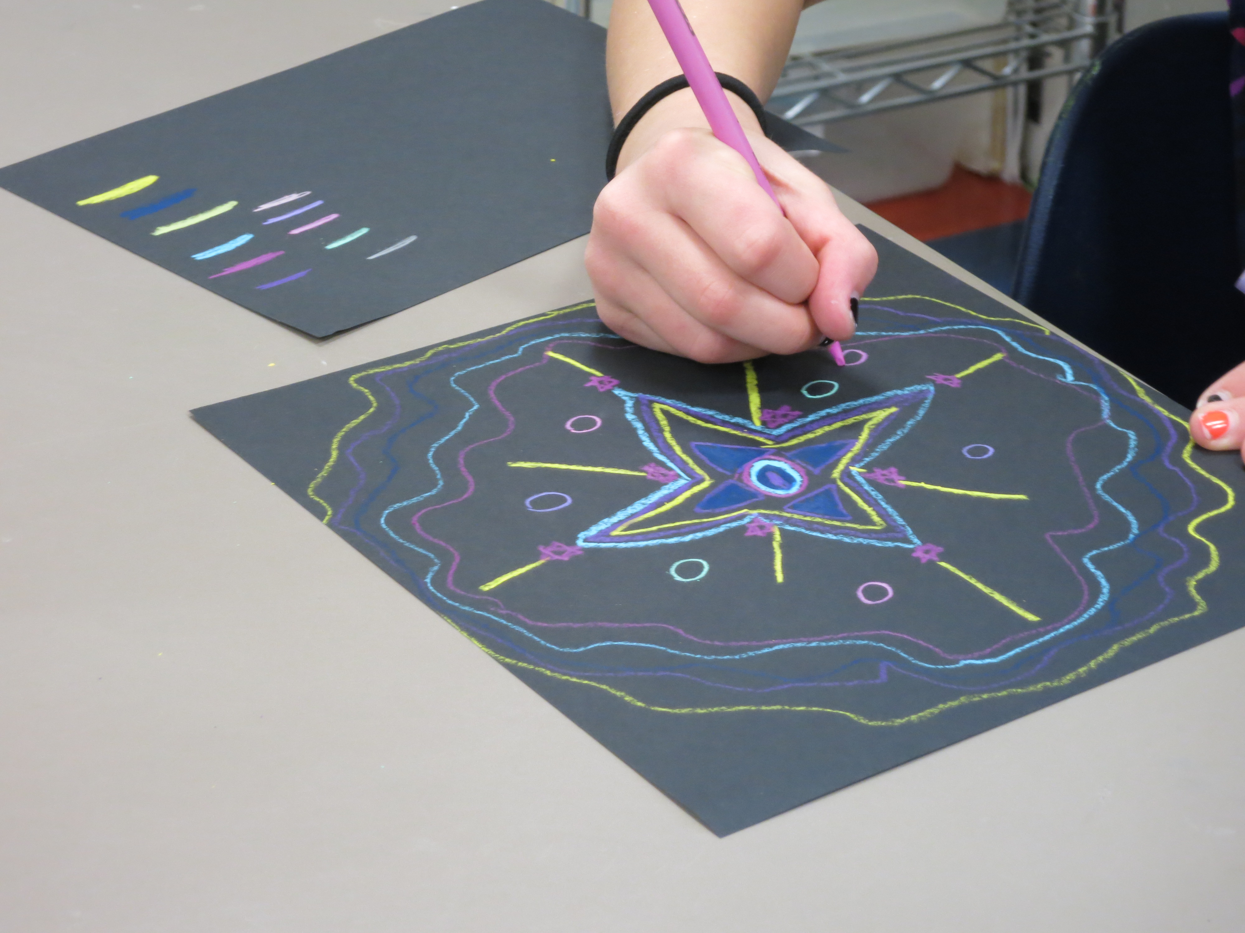 We chose a family of colors to bring our design to life and thought about how they could help support our need for symmetry in our Rangoli design.