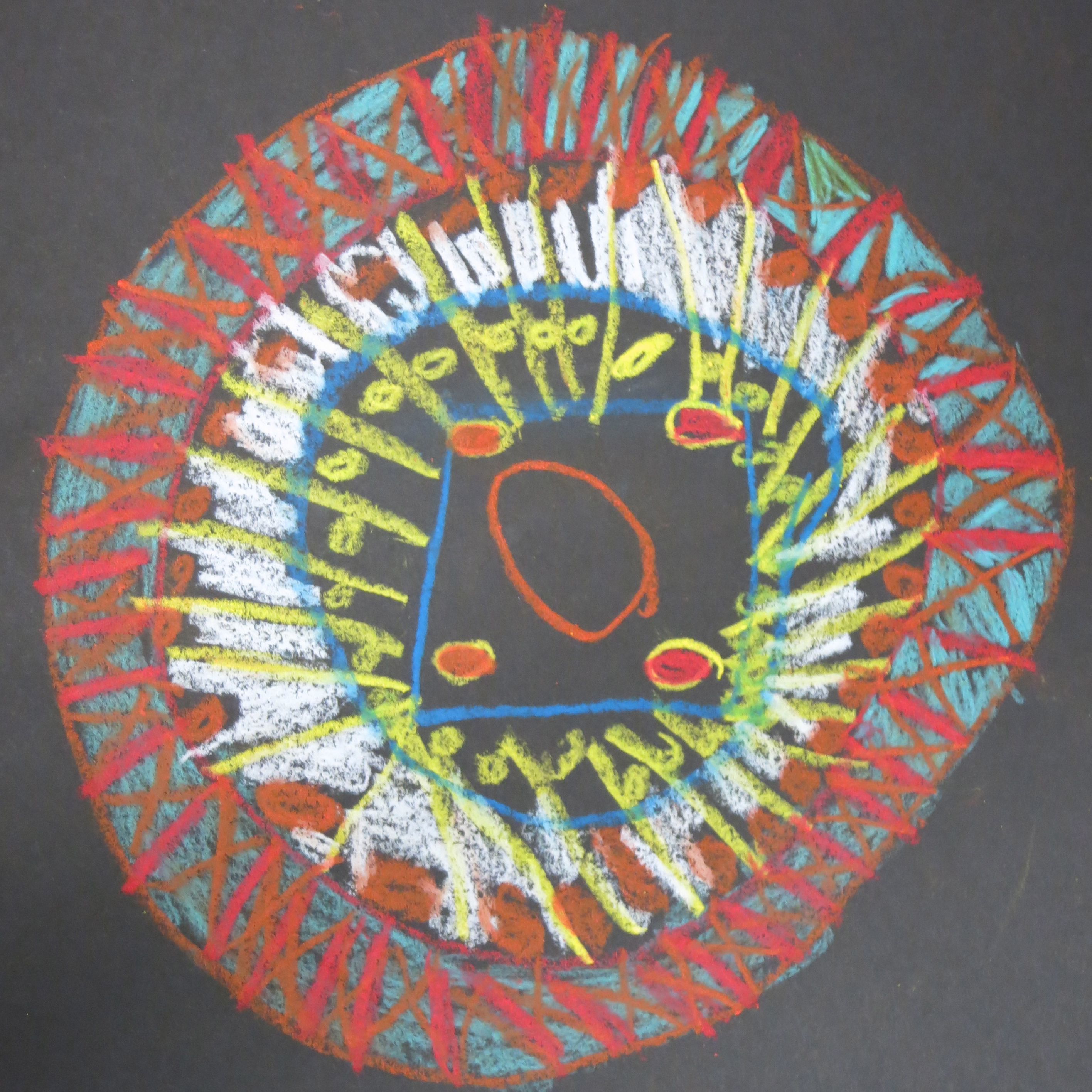 The next day, we discussed the mathematics behind forming a symmetrical design. We began in the center and added lines and shapes around the center in an outward motion to expand our design. We shared strategies for maintaining the symmetry in our design.