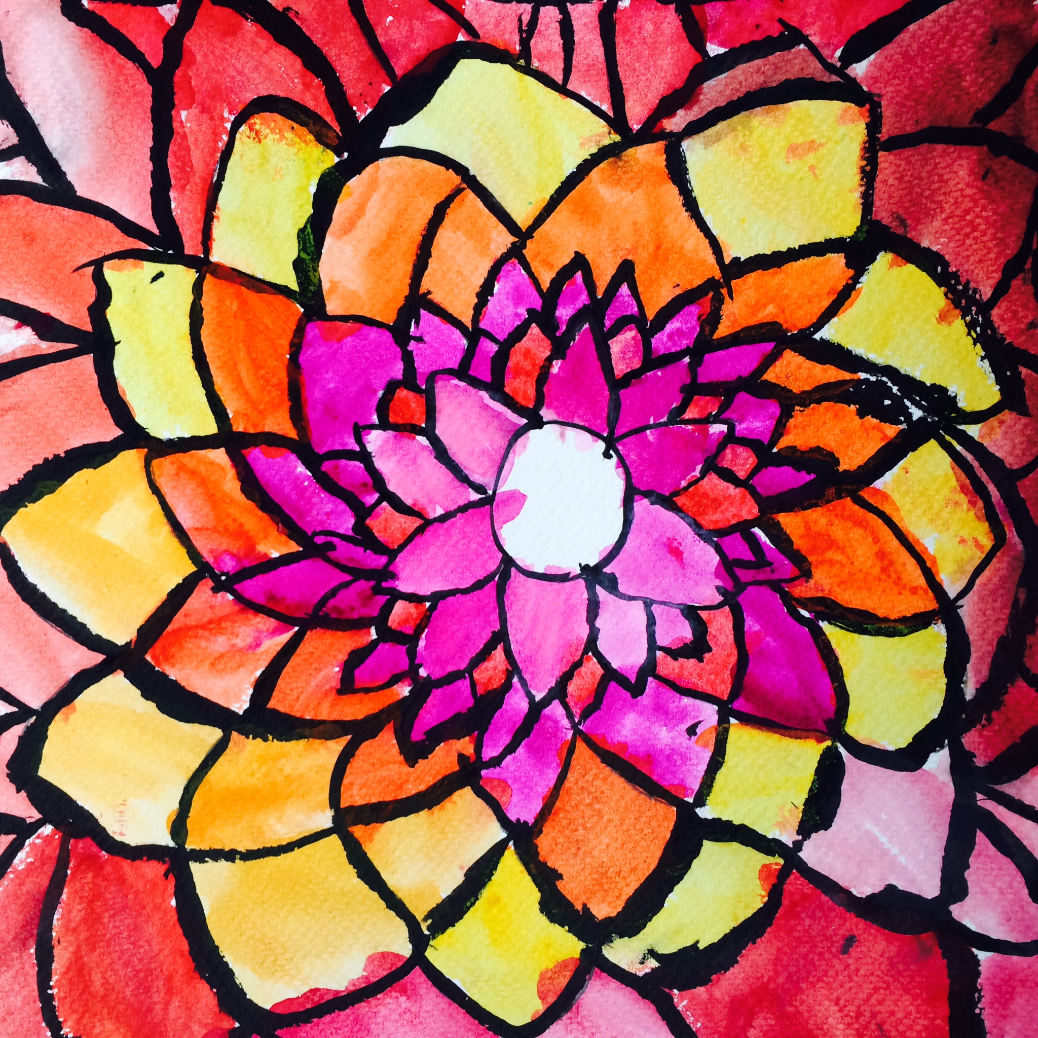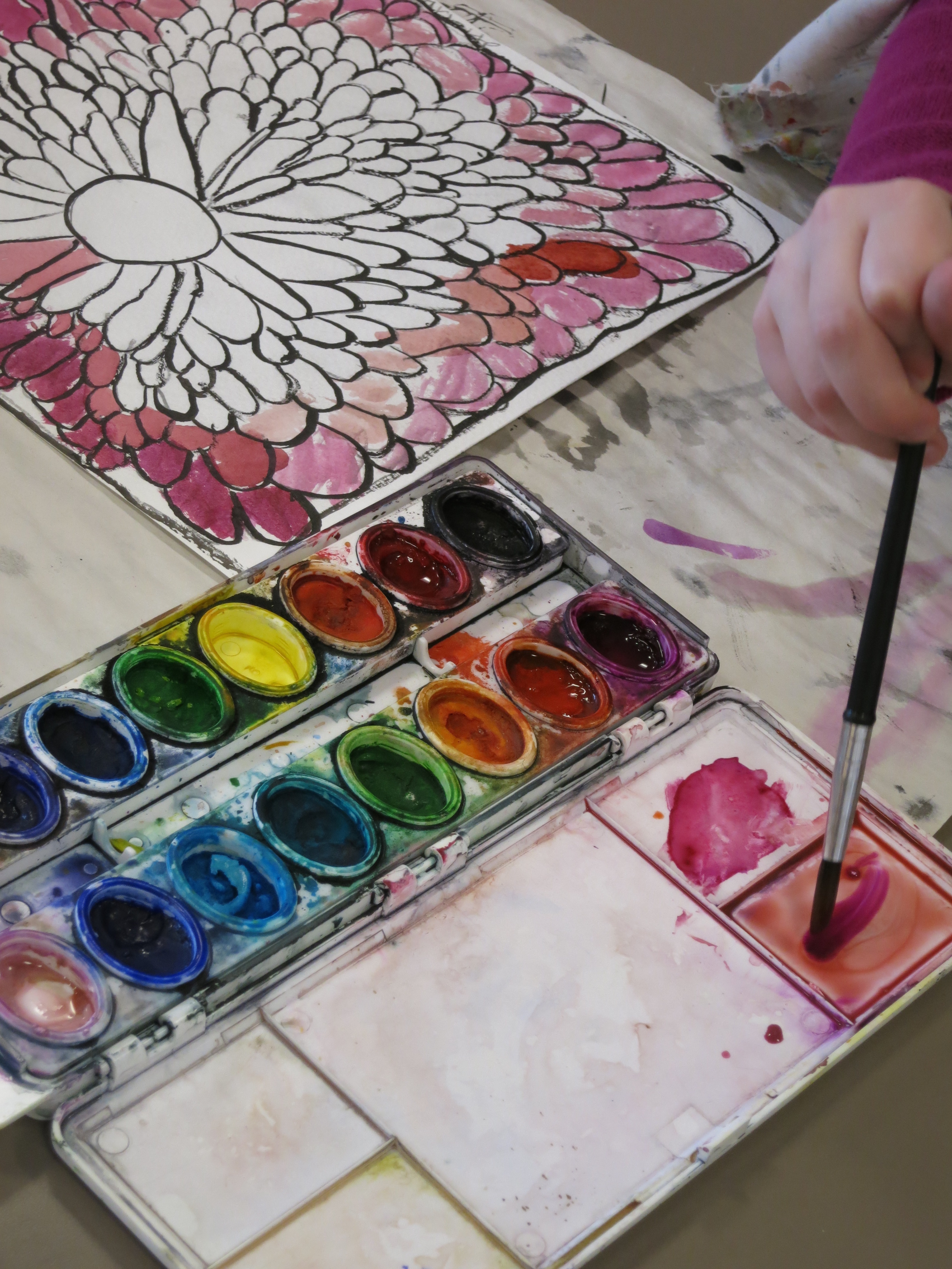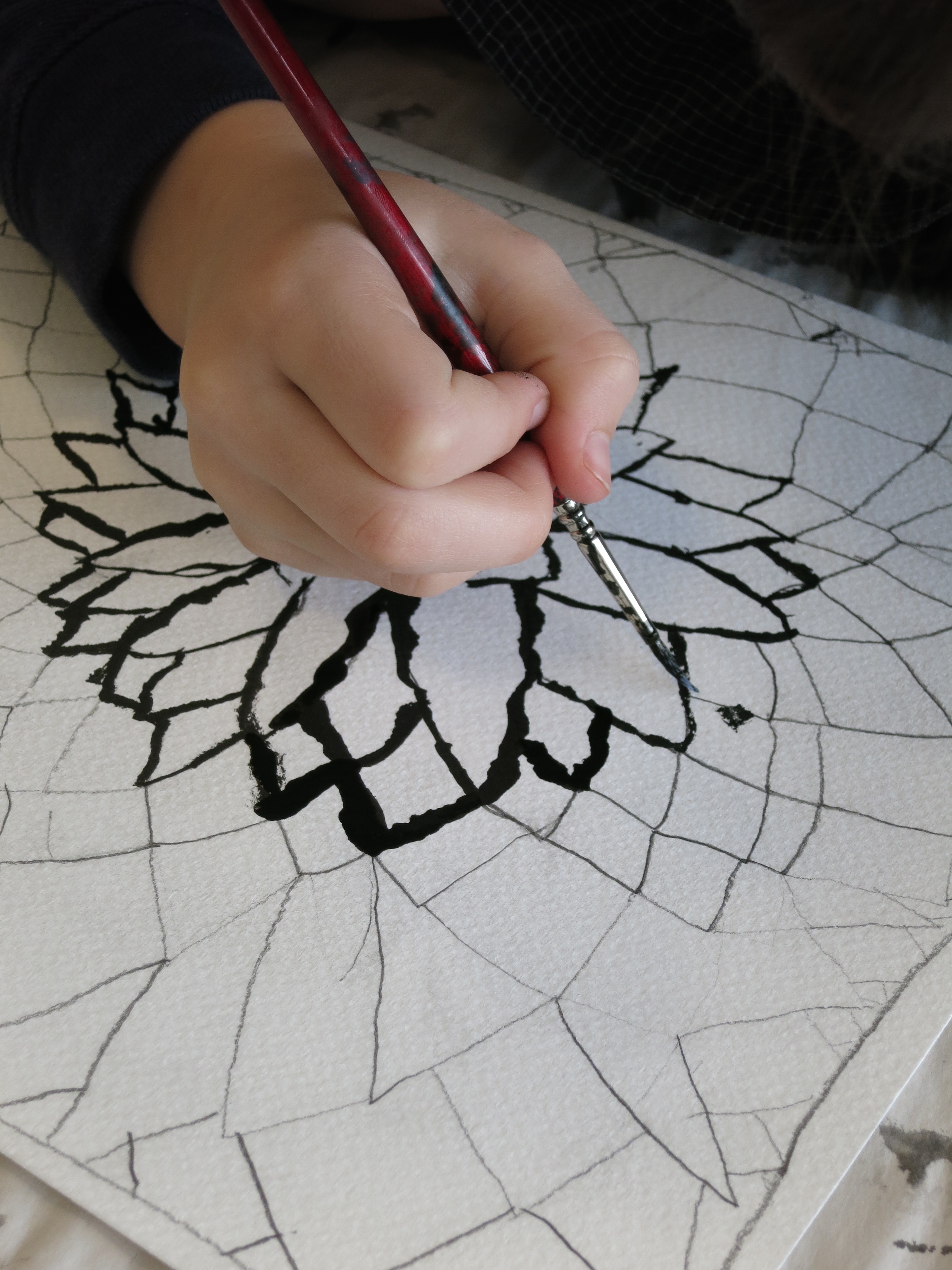 We used ink to make our drawing more defined. We work slow and practice mindfulness when using this permanent material.