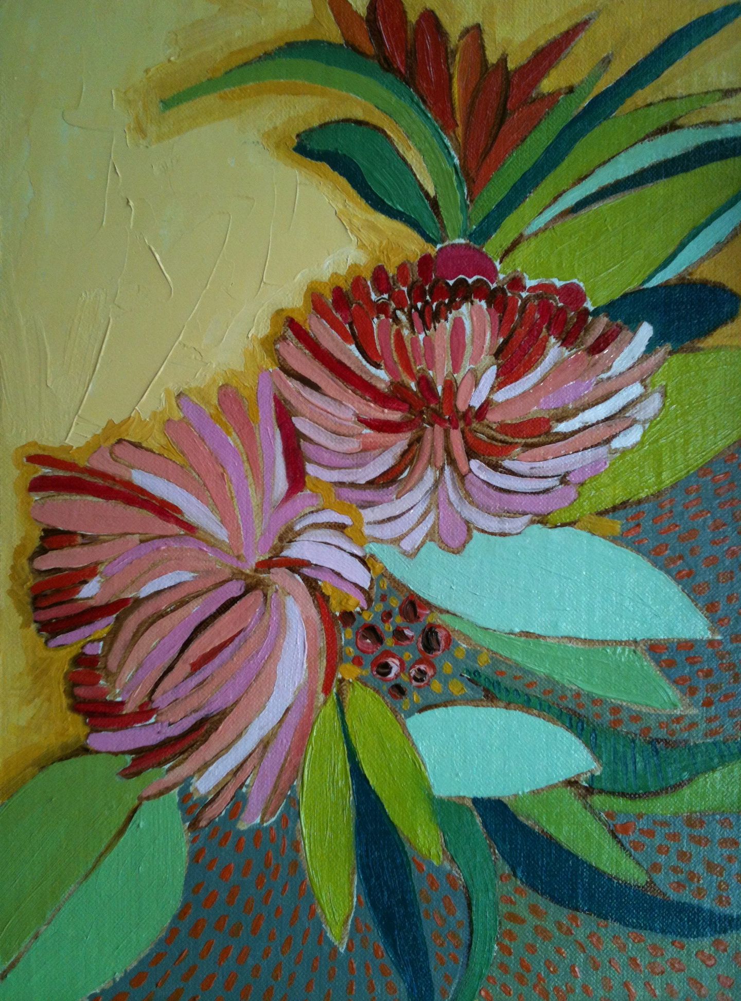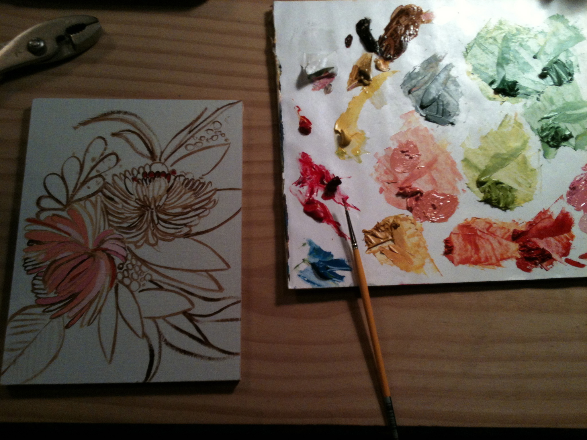 Here is my floral work in progress. By mid session it reminded me of Blanche’s bedspread in Golden Girls. No Joke. Not good. Had to work on my palette choices.